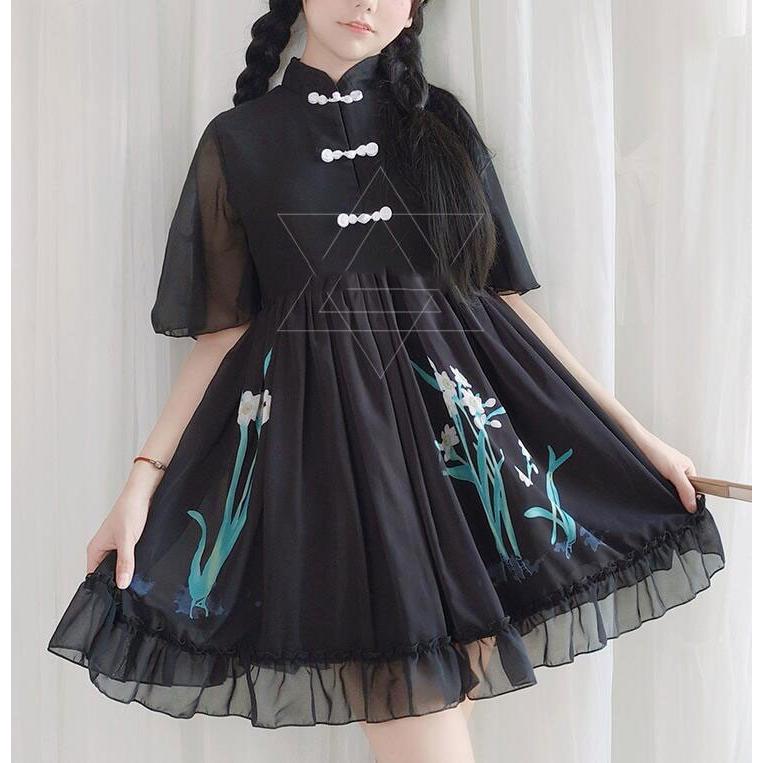 ロリータワンピース レディース ワンピース 半袖 ワンピ Aライン 中華風 チャイナボタン 可愛い 美少女ウェア 全店2点送料無料 Sand1703 サンドリスオンライン 通販 Yahoo ショッピング