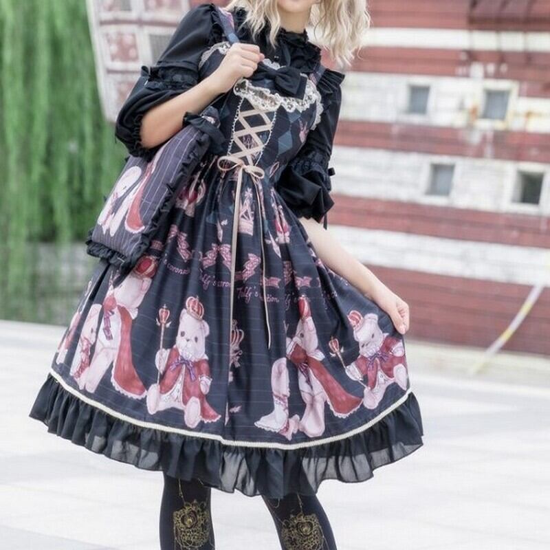 M0346 ワンピース ロリータ ジャンパースカート Jsk ロリィタ ゴシック ゴスロリ 春夏 オリジナル クマ Black Magicspice